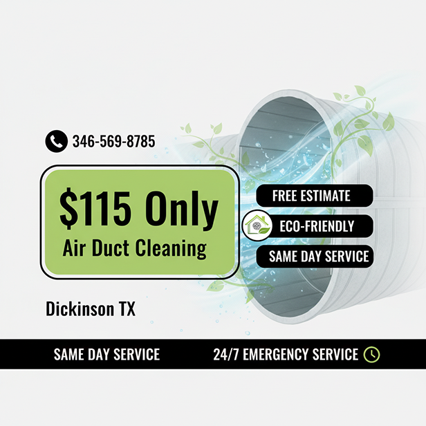 Choose Air Duct Vent Cleaning Dickinson TX for dependable, eco-friendly service backed by advanced HEPA technology. Our skilled technicians use modern tools to remove dust, mold, and allergens, ensuring stronger airflow, lower energy bills, and lasting indoor freshness.